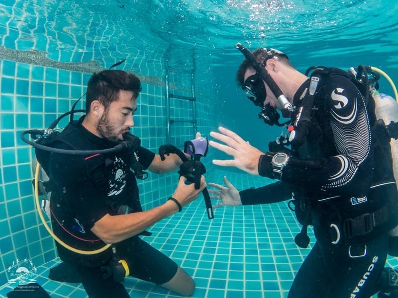 During the PADI Diving Instructor course (IDC) that I teach at Sairee Cottage Diving on Koh Tao in Thailand, I dedicate a special “how to teach the PADI Mask Removal and Replacement” workshop in the classroom and then in confined water to make it easier for my PADI Diving Instructor candidates to go on and teach this skill with real dive students.